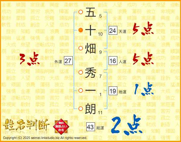 五十畑秀一朗さんの総運は43画の2点!