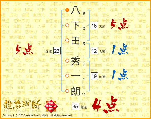 八下田秀一朗さんの総運は35画の4点!