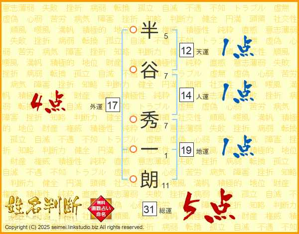 半谷秀一朗さんの総運は31画の5点!