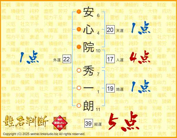 安心院秀一朗さんの総運は39画の5点!