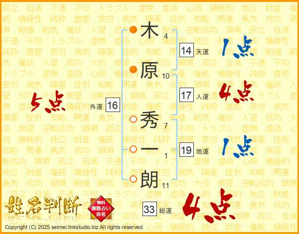 木原秀一朗さんの総運は33画の4点!