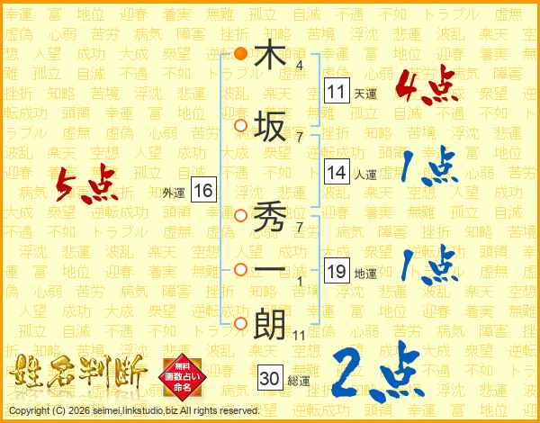 木坂秀一朗さんの総運は30画の2点!