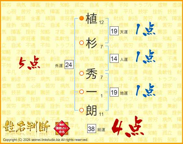 植杉秀一朗さんの総運は38画の4点!