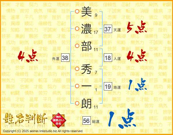 美濃部秀一朗さんの天運は37画の5点!