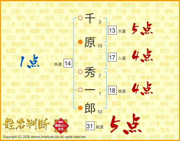 千原秀一郎さんの総運は31画の5点!