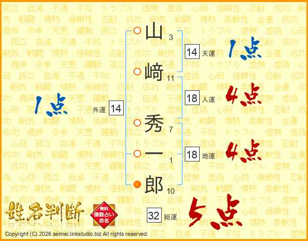 山﨑秀一郎さんの総運は32画の5点!