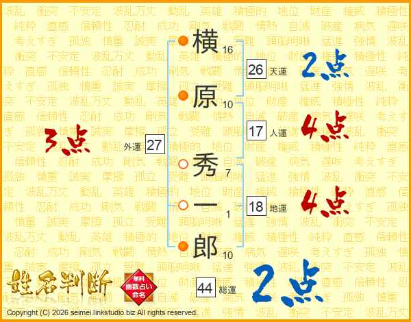 横原秀一郎さんの天運は26画の2点!