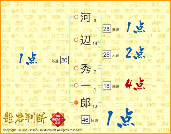 河辺秀一郎さんの総運は46画の1点!