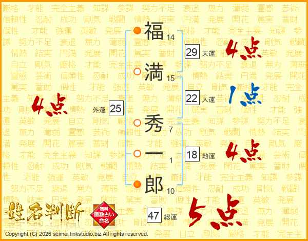福満秀一郎さんの総運は47画の5点!