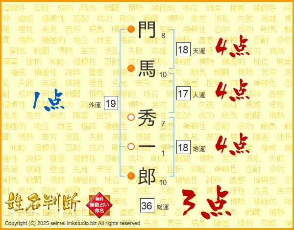 門馬秀一郎さんの総運は36画の3点!