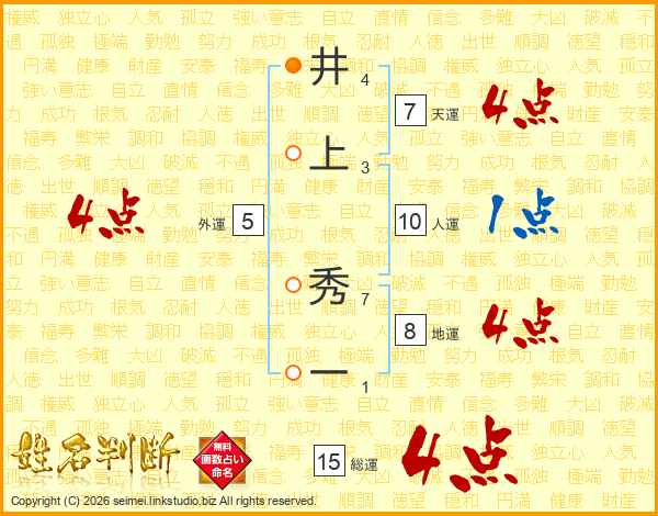 井上秀一さんの総運は15画の4点!