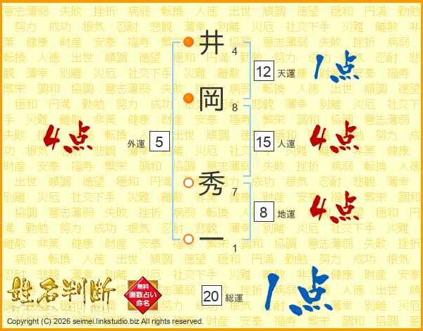 井岡秀一さんの総運は20画の1点!