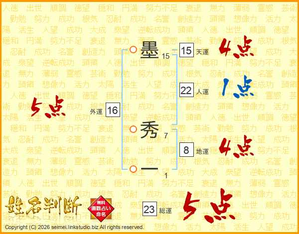 墨秀一さんの総運は23画の5点!