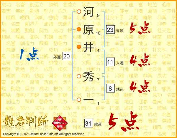 河原井秀一さんの総運は31画の5点!