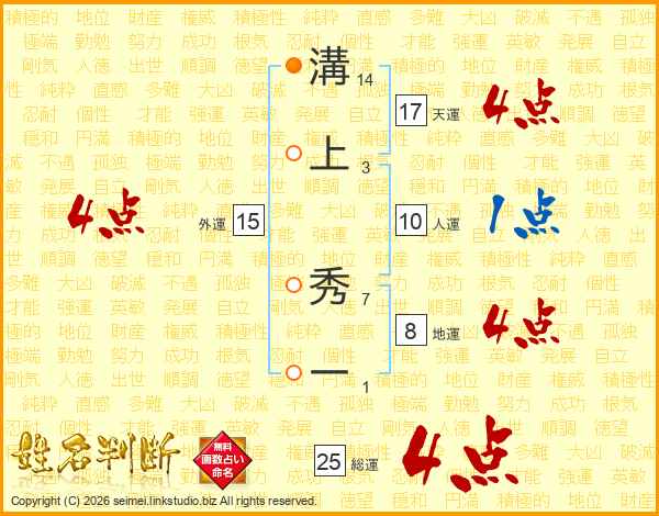 溝上秀一さんの総運は25画の4点!