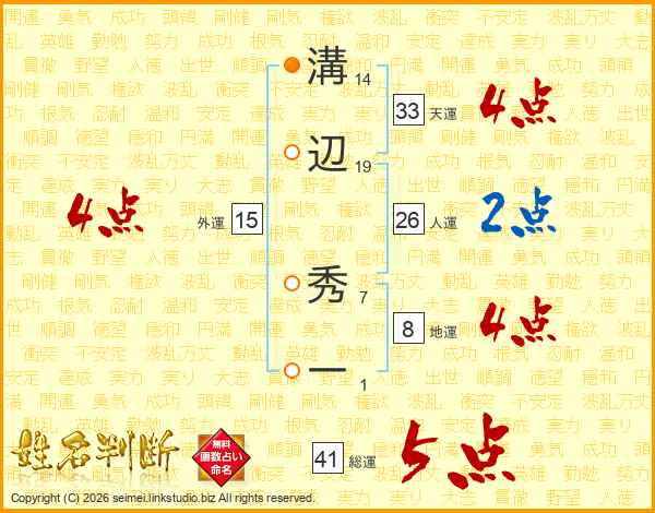 溝(14画)辺(19画) 秀(7画)一(1画)
