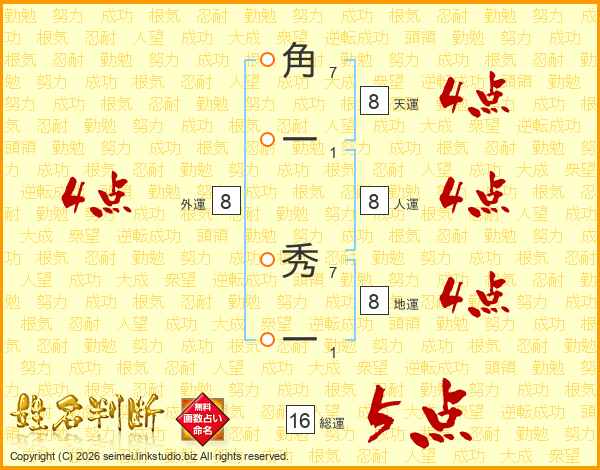 角一秀一さんの総運は16画の5点!