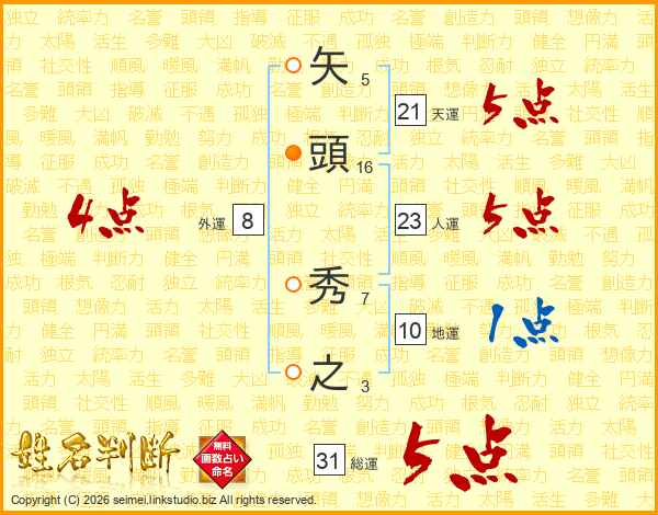 矢頭秀之さんの総運は31画の5点!