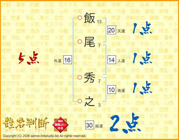 飯尾秀之さんの総運は30画の2点!