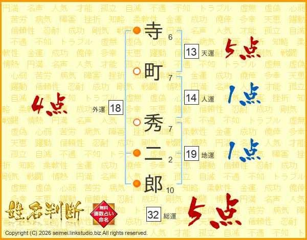 寺(6画)町(7画) 秀(7画)二(2画)郎(10画)