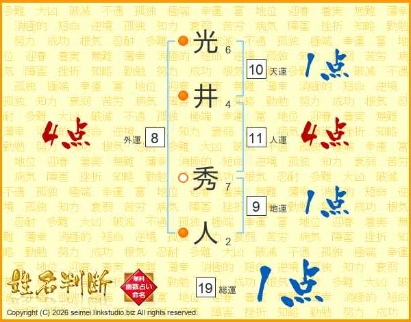 光井秀人さんの人運は11画の4点!