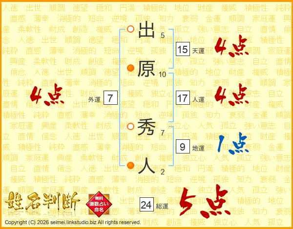 出原秀人さんの総運は24画の5点!