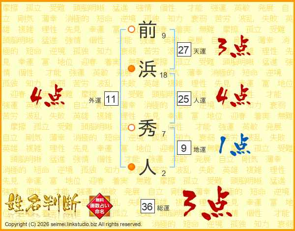 前浜秀人さんの人運は25画の4点!