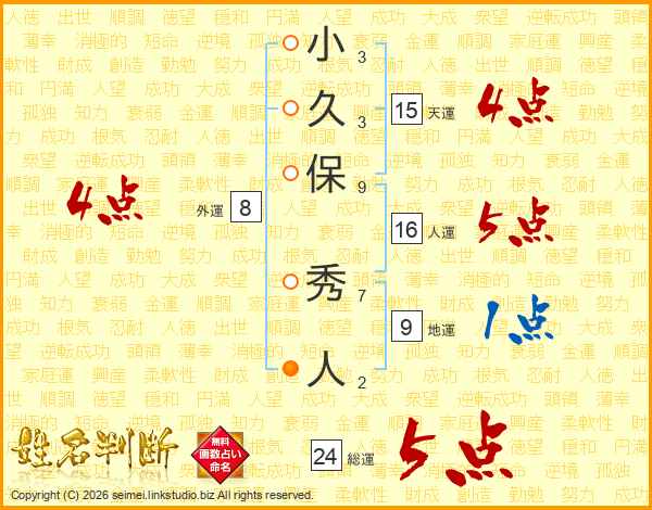 小(3画)久(3画)保(9画) 秀(7画)人(2画)