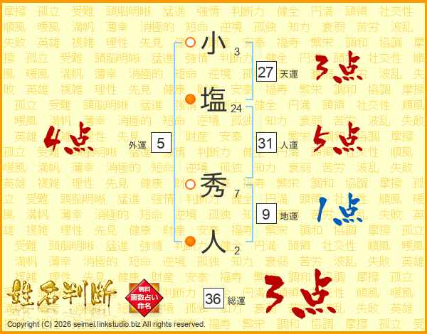 小塩秀人さんの人運は31画の5点!