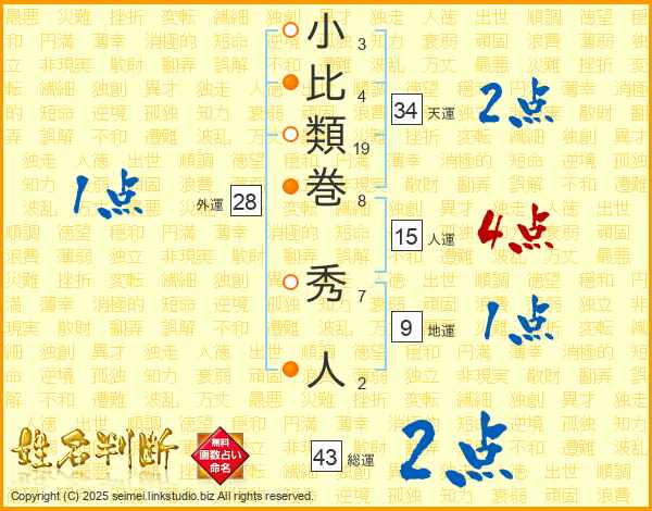 小(3画)比(4画)類(19画)巻(8画) 秀(7画)人(2画)