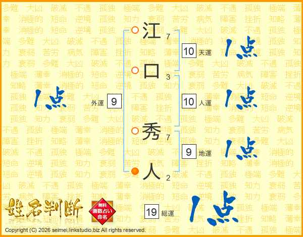 江口秀人さんの総運は19画の1点!