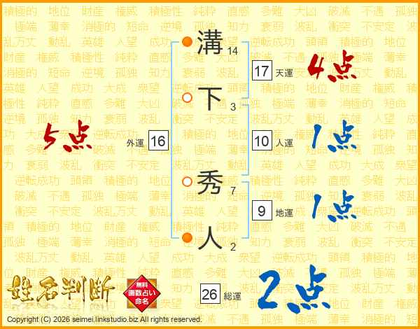 溝下秀人さんの総運は26画の2点!