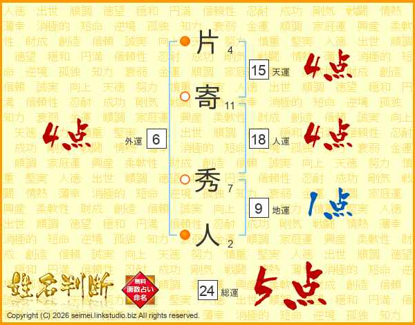 片寄秀人さんの総運は24画の5点!