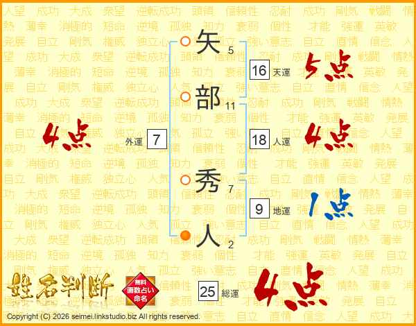 矢部秀人さんの総運は25画の4点!