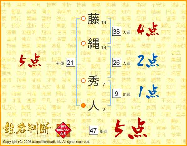 藤縄秀人さんの総運は47画の5点!