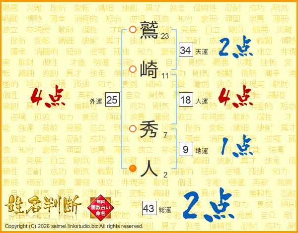 鷲崎秀人さんの総運は43画の2点!