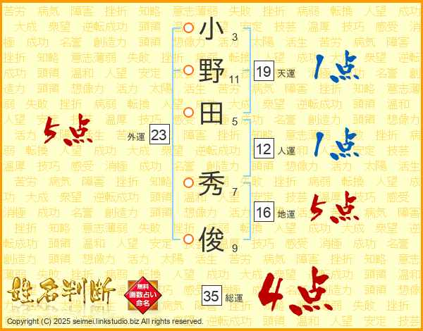 小野田秀俊さんの総運は35画の4点!