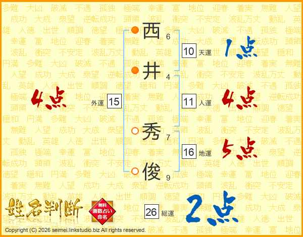 西井秀俊さんの人運は11画の4点!