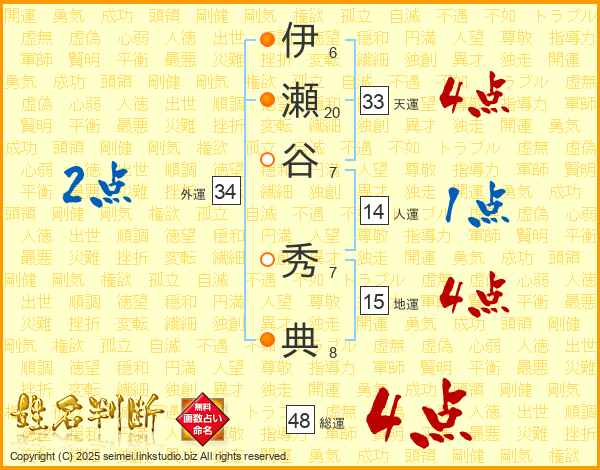 伊瀬谷秀典さんの総運は48画の4点!