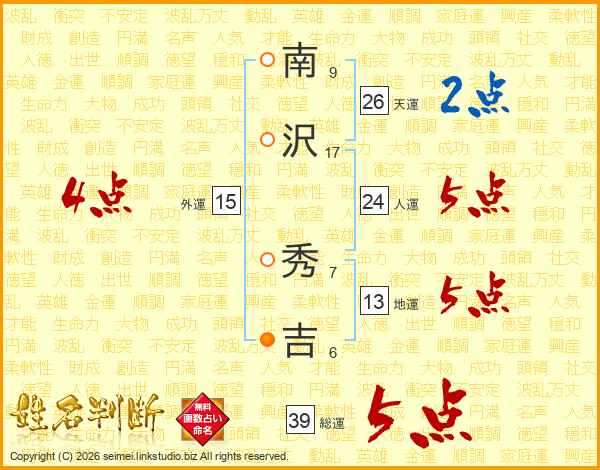 南沢秀吉さんの総運は39画の5点!
