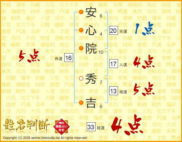 安心院秀吉さんの総運は33画の4点!