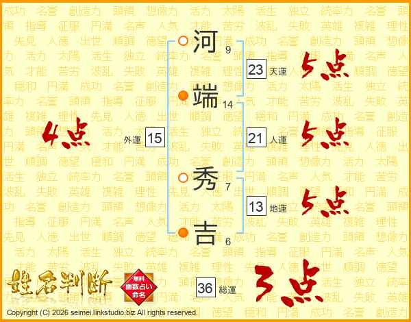河端秀吉さんの天運は23画の5点!