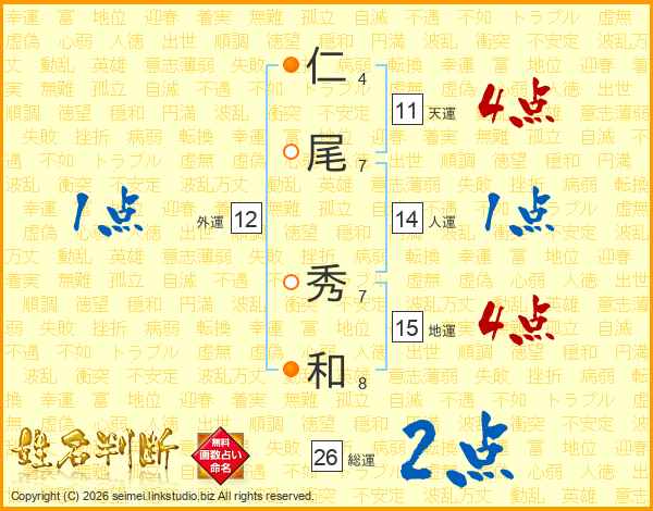 仁尾秀和さんの総運は26画の2点!