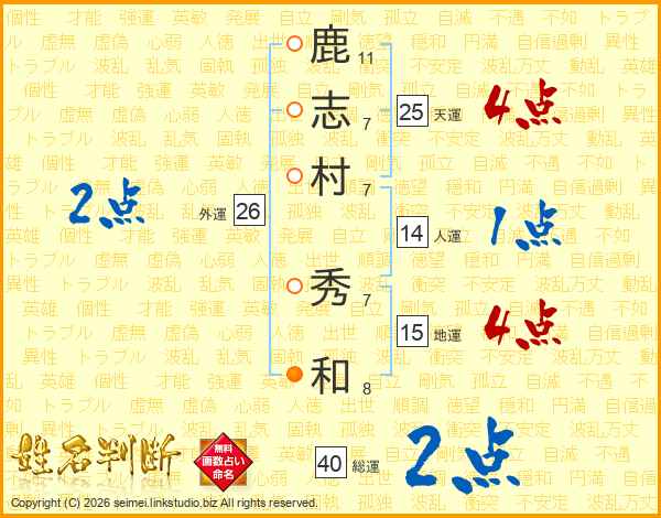 鹿志村秀和さんの総運は40画の2点!
