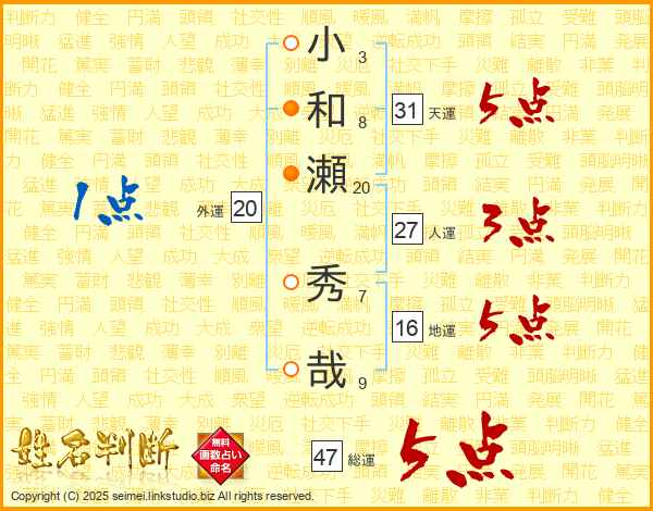小和瀬秀哉さんの総運は47画の5点!