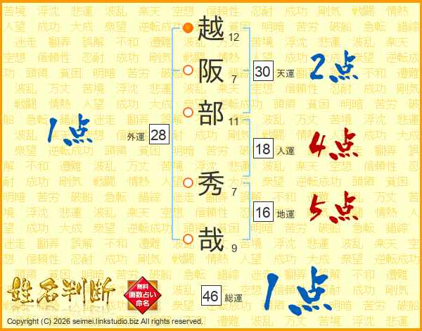 越阪部秀哉さんの総運は46画の1点!