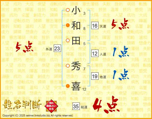 小和田秀喜さんの外運は23画の5点!