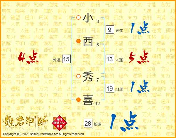 小西秀喜さんの外運は15画の4点!