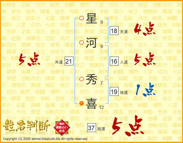 星河秀喜さんの総運は37画の5点!