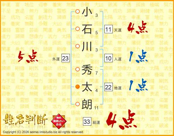 小石川秀太朗さんの総運は33画の4点!
